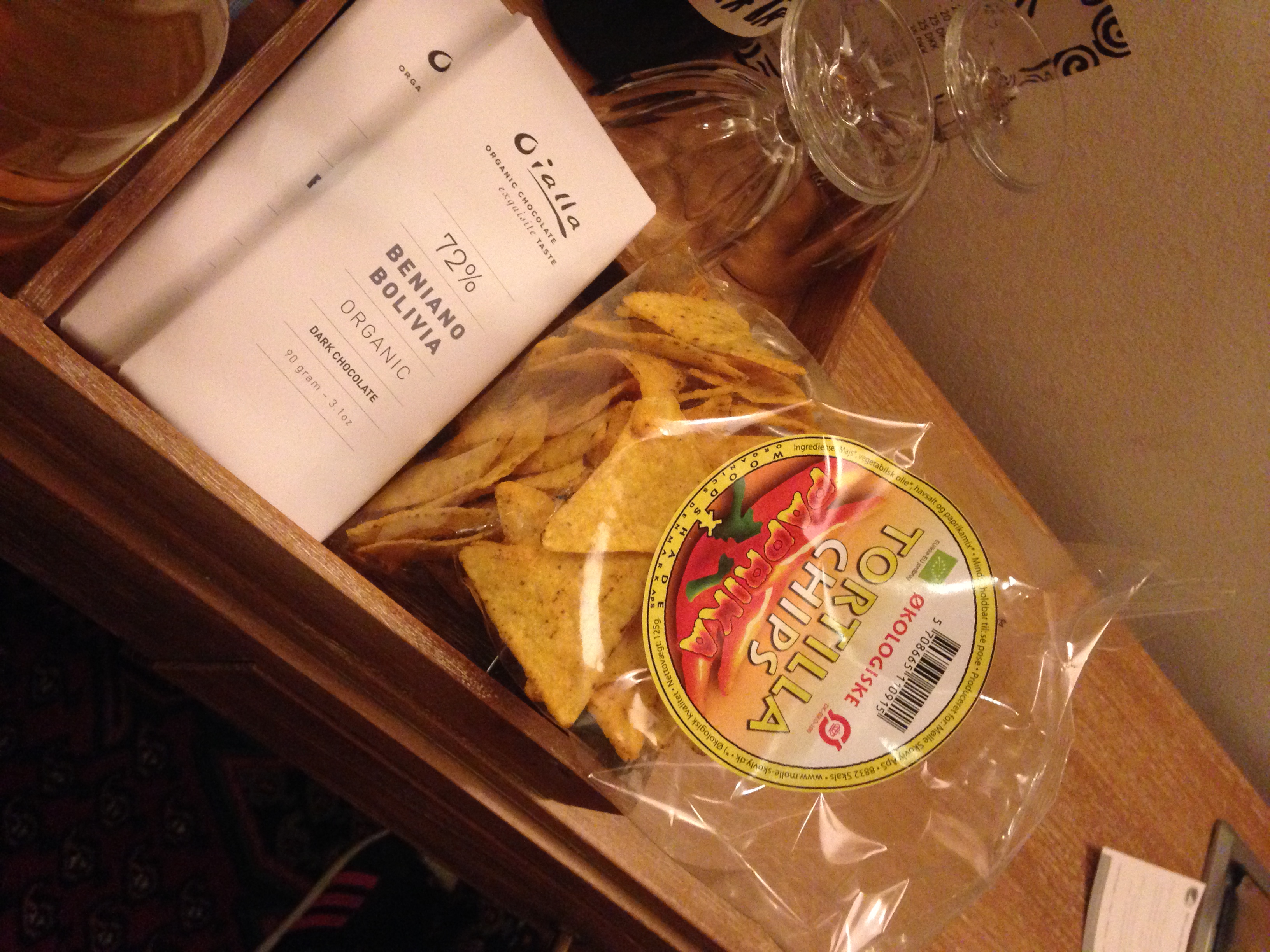Hipsterihotelli oli nimeltään Babette Guldsmeden. En tiedä onko se oikeasti hipsterihotelli, mutta kaikki oli niin luomua ja ekoa ja eettistä ja orgaanista, että on sula ihme etteivät tyynyt olleet untuvan sijaan täytetty lehtikaalilla ja petivaatteet hampusta (saattoivat ne olla). Hotellilla oli peräti oma ekologinen kosmetiikkamallistonsa (oletan), jota oli tarjolla huoneessa sekä myynnissä alakerrassa. Se on kätevää, joska ilta menee pitkäksi eikä löydä nakkikioskia niin voi yöpalaksi syödä vaikka hotellin shampoota.